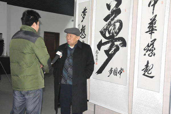 聊城市老年书画研究会李恒聪会长接受电视台采访